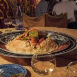 Especially for welcoming you, qualified staff will accompany you to your Caidale tent where a table is reserved for you. The atmosphere is magical and you quickly dive into another world… you will enjoy a traditional dinner with Harrira soup, a barbecue (lamb meat steamed), couscous with fresh vegetables and a platter fresh fruit. The dishes are brought to your table, musicians and dancers passing from time to time… You will savor your meal while enjoying the Fantasia show, also you will find the area full of horsemen, acrobats and belly dancers will enliven your evening which will feature among your most beautiful memories of Marrakech!